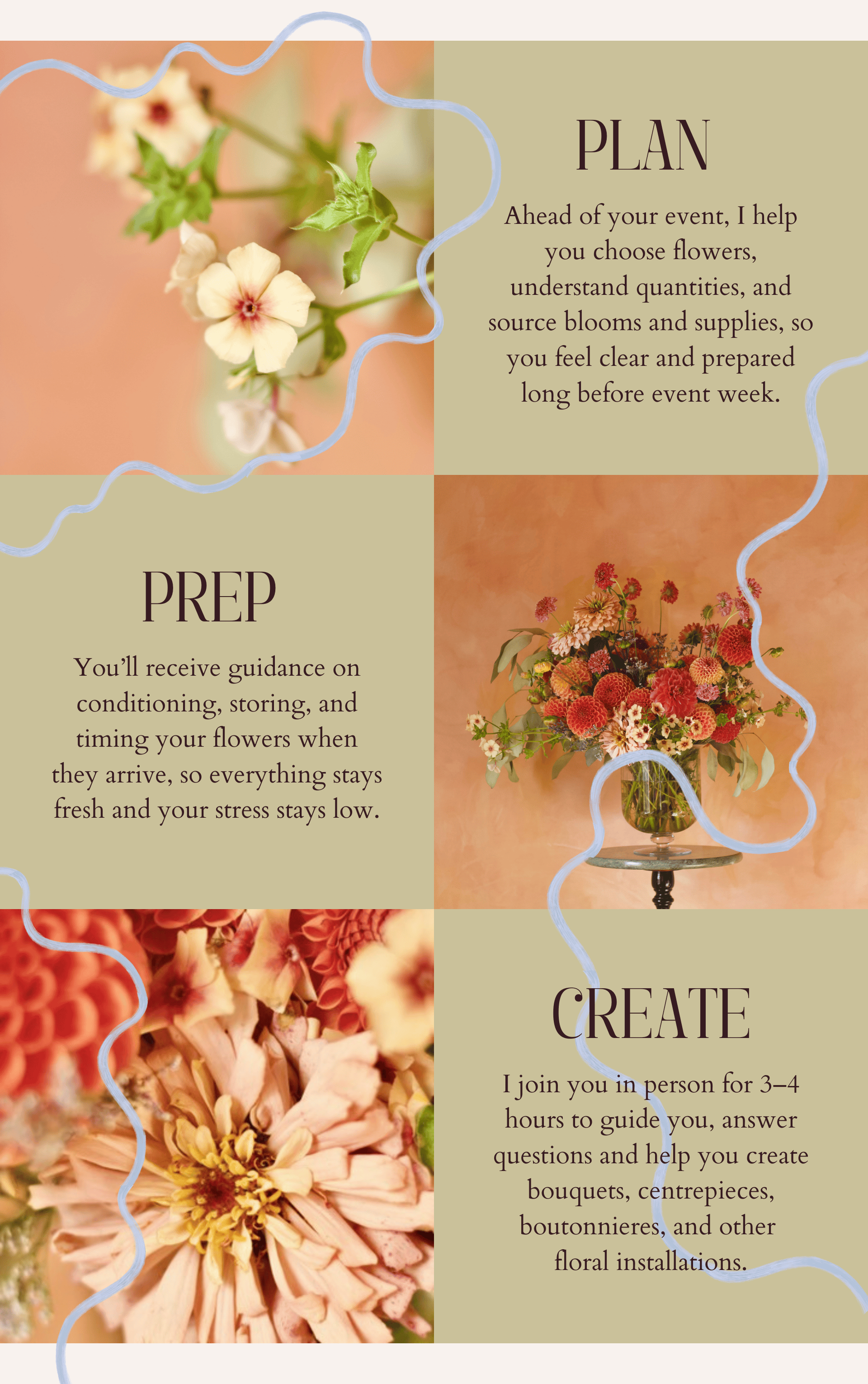 Secure your spot for the 2026 event season and get hands-on support for your DIY flowers. I’ll guide you through planning, sourcing, and arranging so your event blooms beautifully -- all while keeping the process calm, collaborative, and fun.